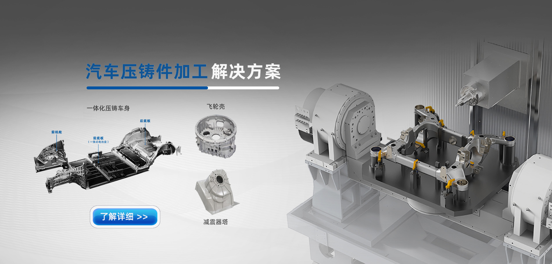 隨著一體化壓鑄行業的興起,普恩克推出了專為大型一體化壓鑄車身結構研制的雙五軸橋式龍門。此外,在其他壓鑄鐵、壓鑄鋁件加工領域也有成熟的行業案例,如雙工位臥式加工中心副車架加工案例、壓鑄后底板、前艙、電池托盤等。